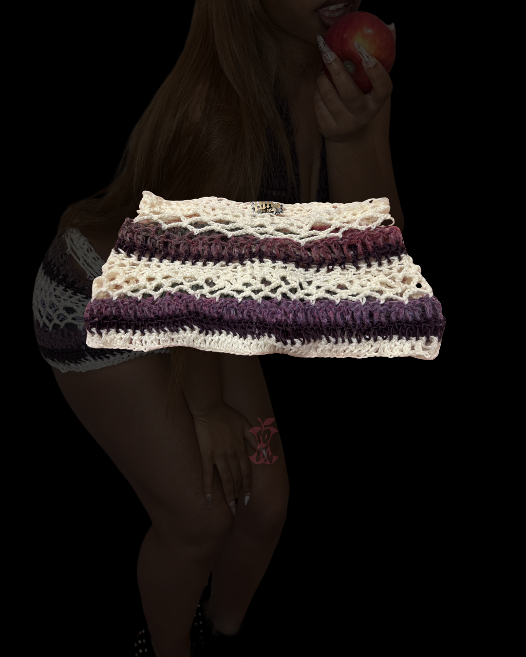 style is plum; micro crochet skirt with fishnet pattern. available as pictured and with additional length added.